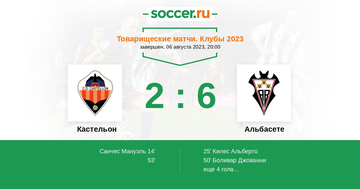 Протокол матча Кастельон против Альбасете