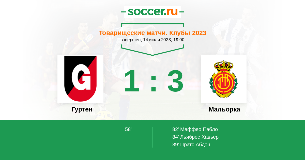 Протокол матча Гуртен против Мальорка