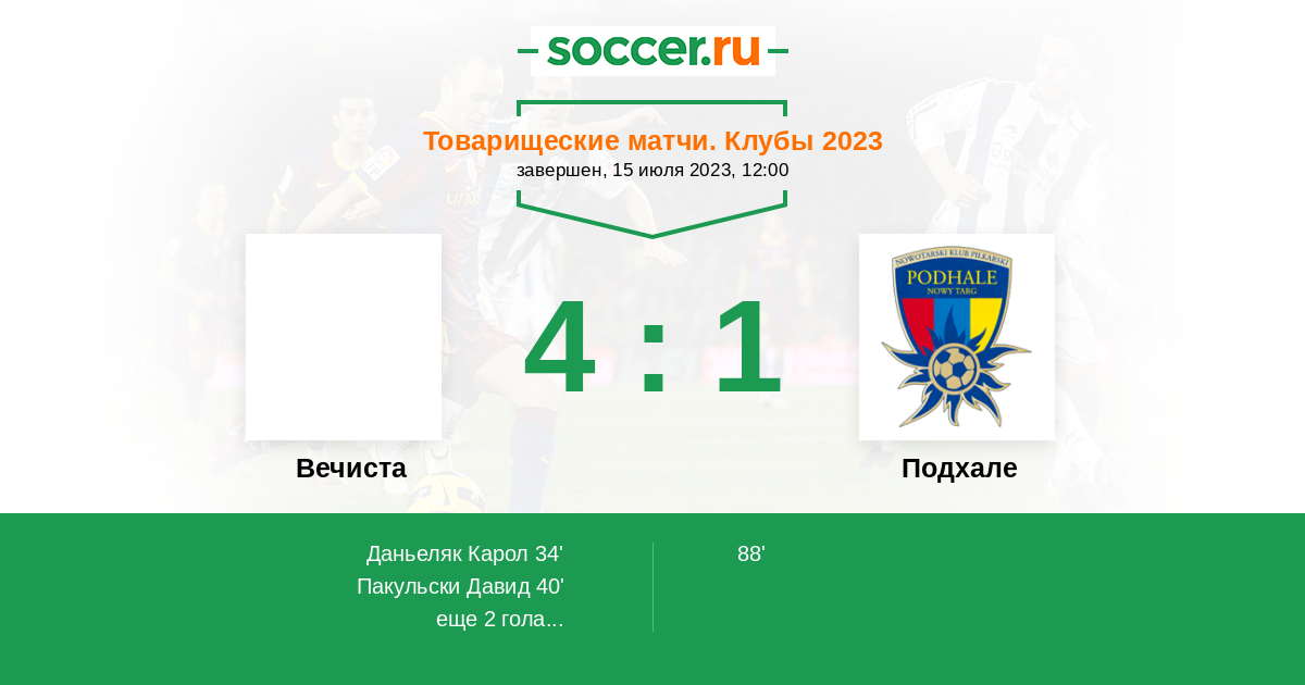 Протокол матча Вечиста против Подхале