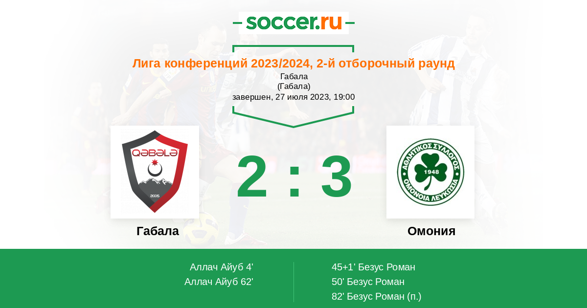 В семи прошлых домашних матчах “Габалы” забивали все команды, а в четырех из пяти (80%) прошлых игр с участием “Омонии” забивалось не менее двух мячей. “Габала” демонстрирует дома хороший футбол. На своем поле за последние восемь игр клуб из Азербайджана проиграл всего лишь один раз, а в пяти случаях он оказался сильнее своих соперников. “Омония” же в гостях не блещет – у нее только один гол на выезде за четыре прошлые игры. Так что с таким соперником азербайджанцы явно избегут поражения. Поставим на хозяев...
