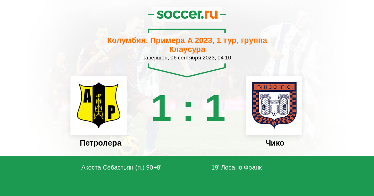 Протокол матча Петролера против Чико