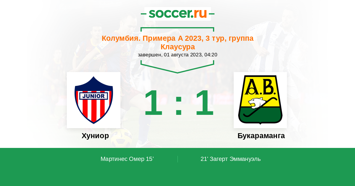 Протокол матча Хуниор против Букараманга