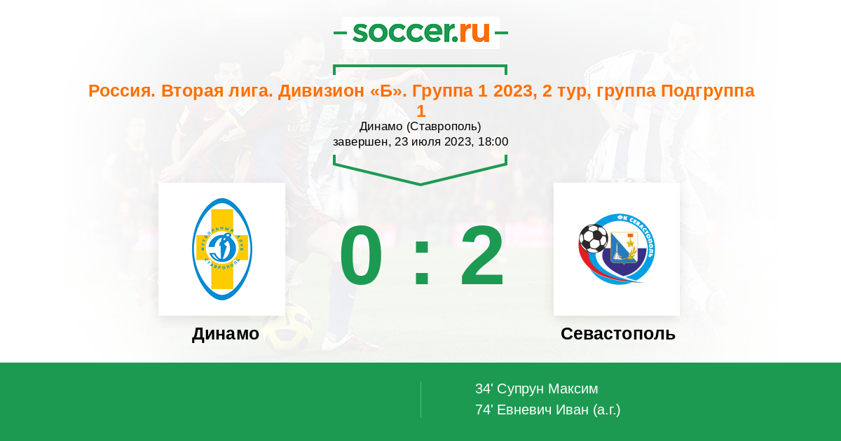 Протокол матча Динамо Ставрополь против Севастополь