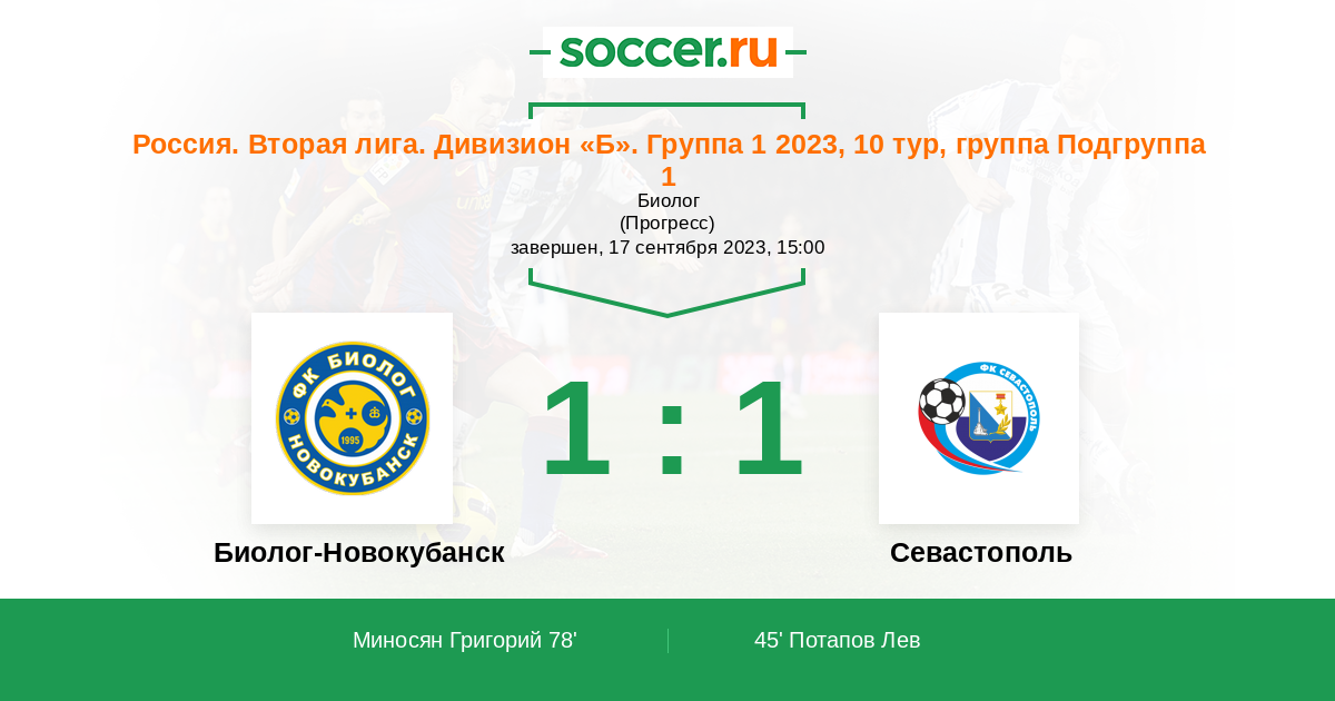 Протокол матча Биолог-Новокубанск против Севастополь