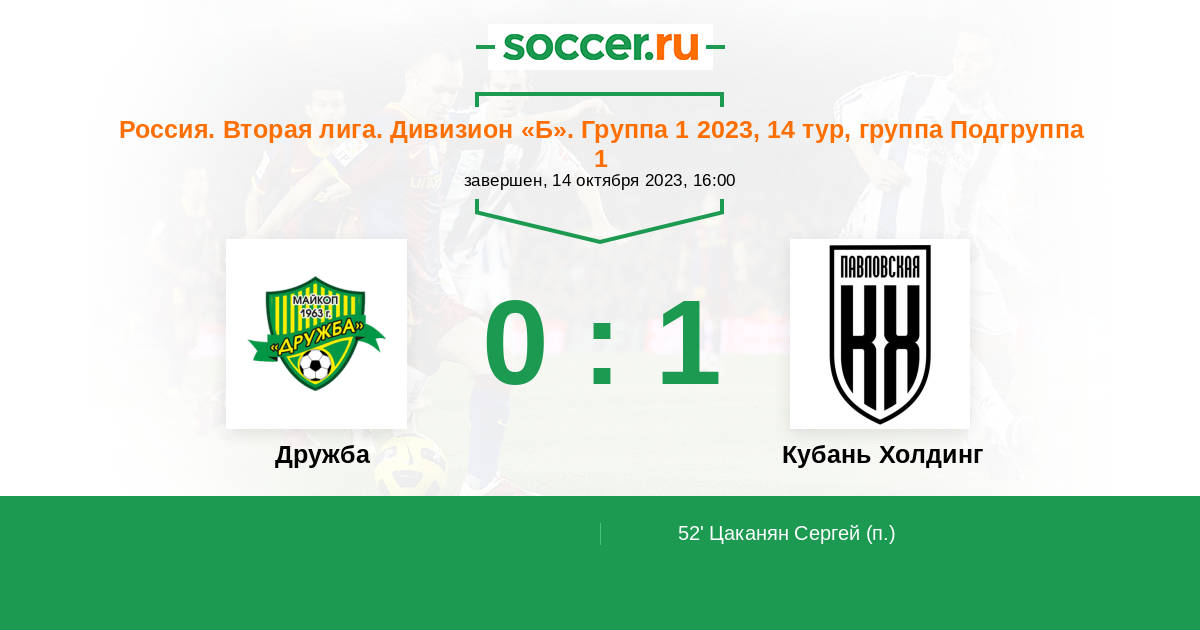 Протокол матча Дружба против Кубань Холдинг