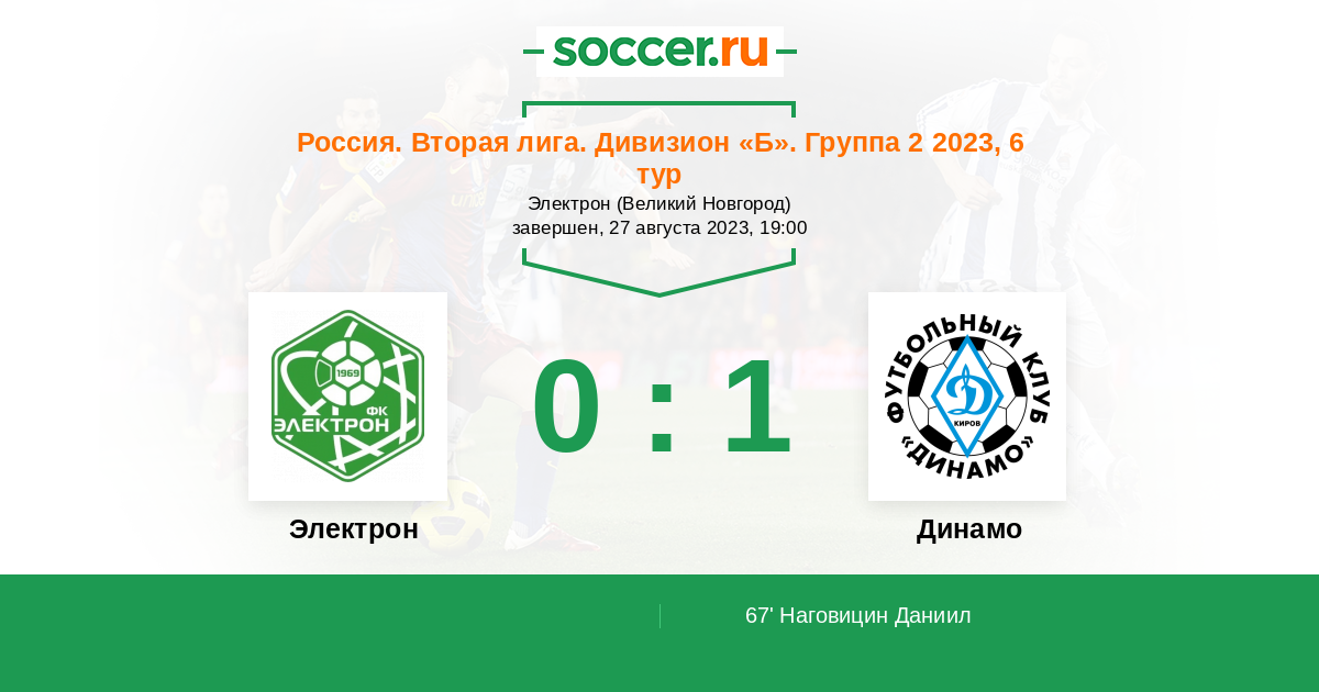 Протокол матча Электрон против Динамо Киров