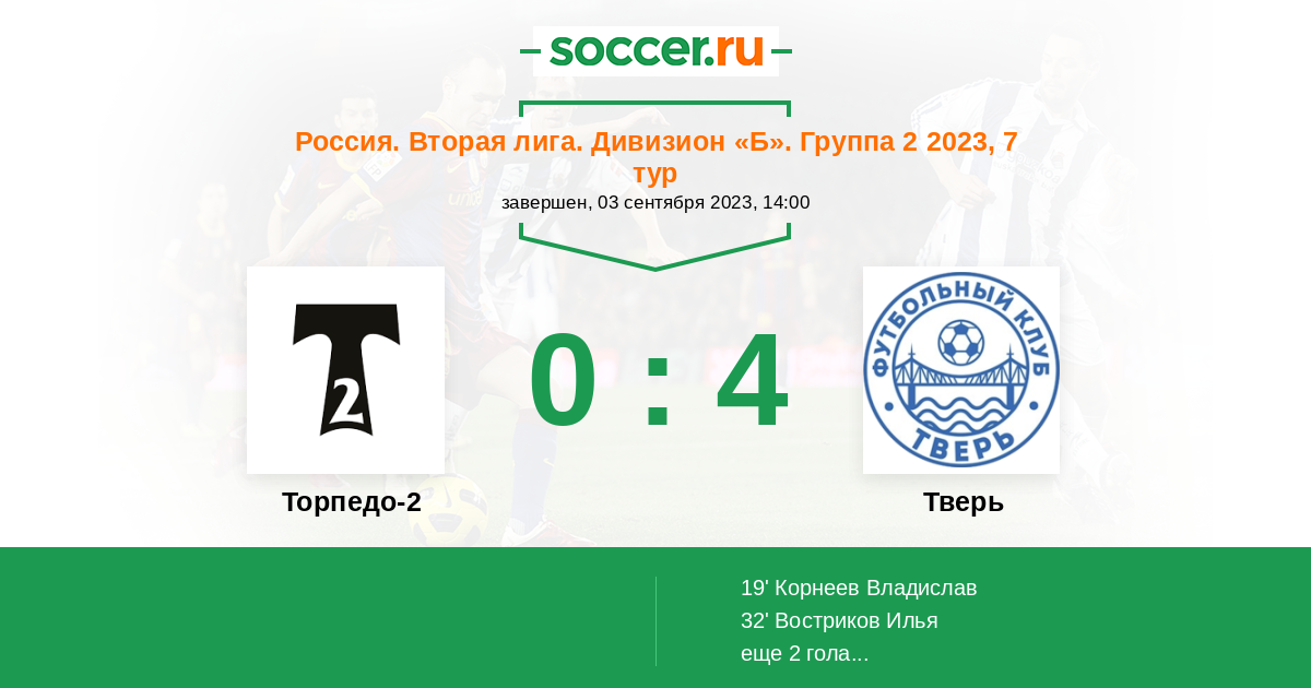 Протокол матча Торпедо-2 против Тверь