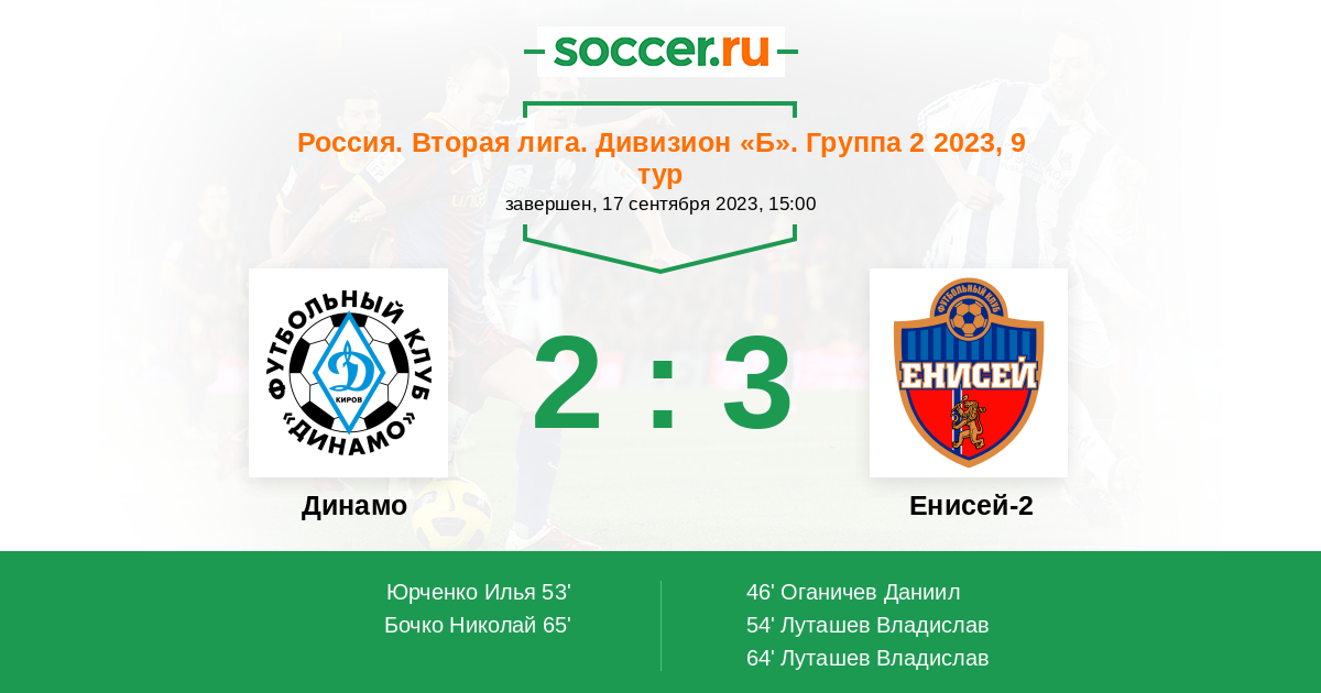 Протокол матча Динамо Киров против Енисей-2