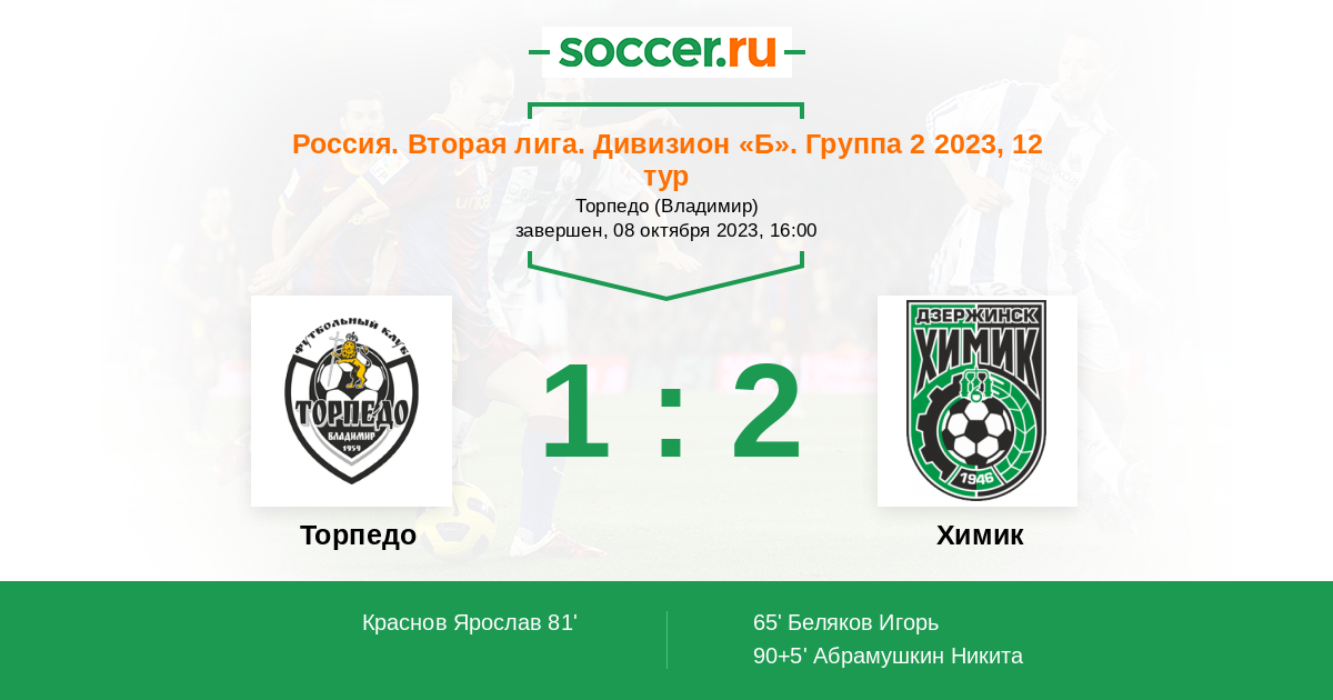 Протокол матча Торпедо против Химик