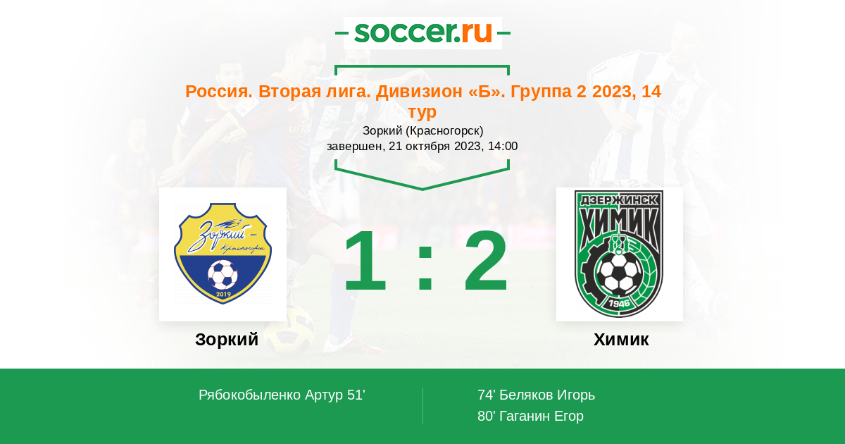 Протокол матча Зоркий против Химик