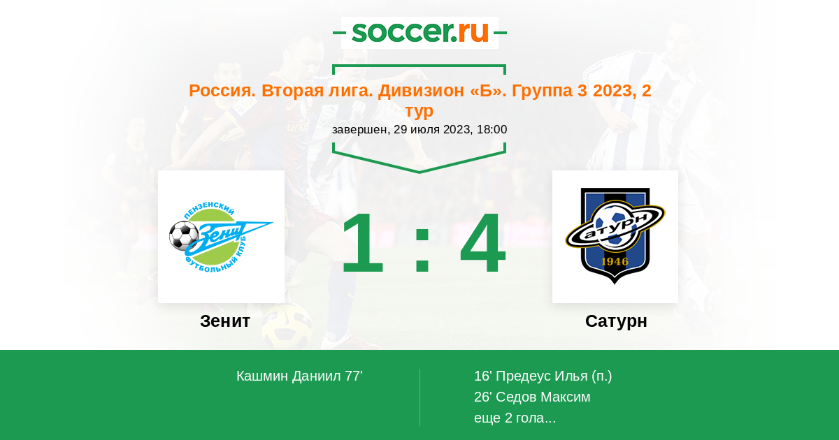 Протокол матча Зенит против Сатурн