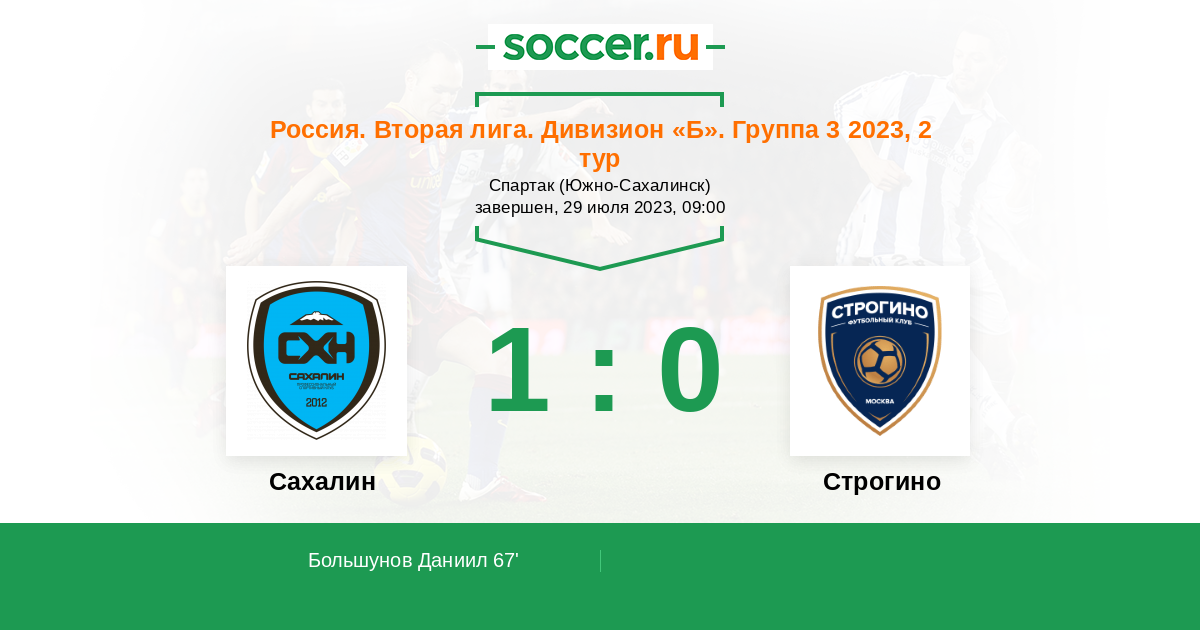 Протокол матча Сахалин против Строгино