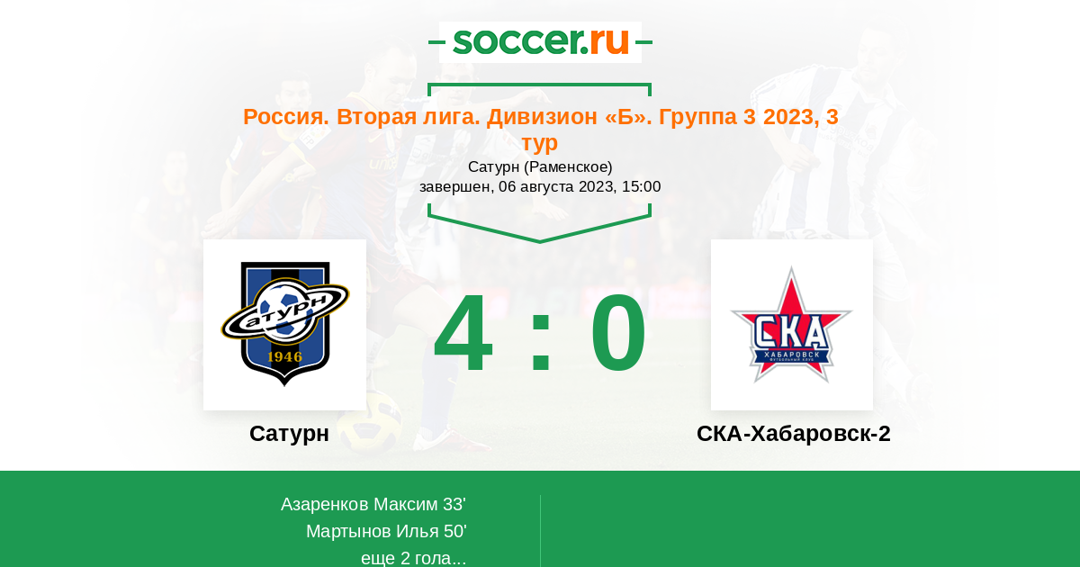 Протокол матча Сатурн против СКА-Хабаровск-2