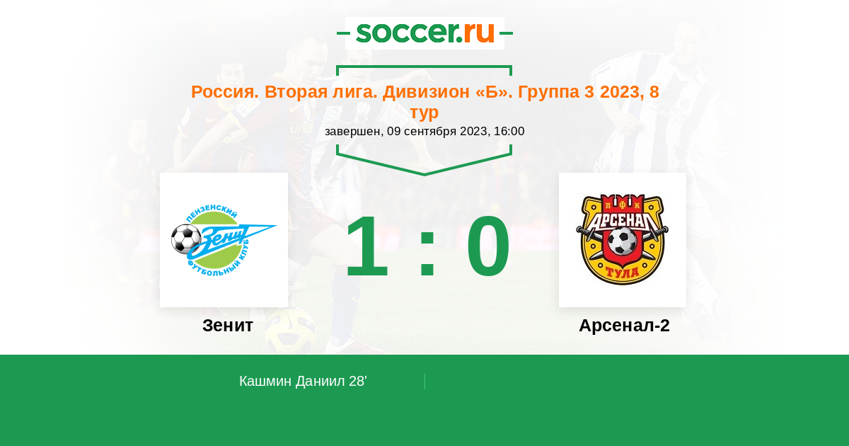 Протокол матча Зенит против Арсенал-2