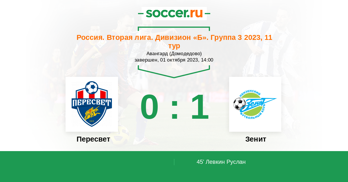 Протокол матча Пересвет против Зенит