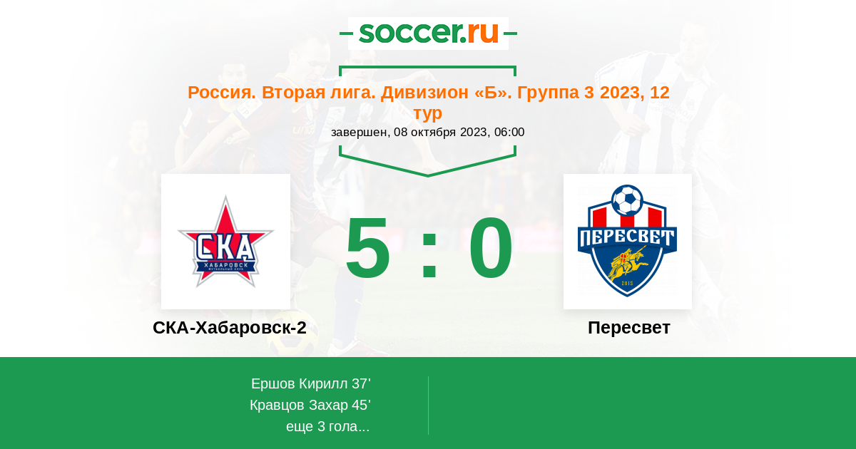 Протокол матча СКА-Хабаровск-2 против Пересвет