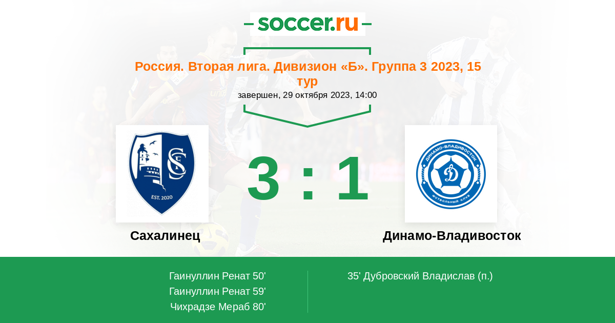Протокол матча Сахалинец против Динамо Владивосток