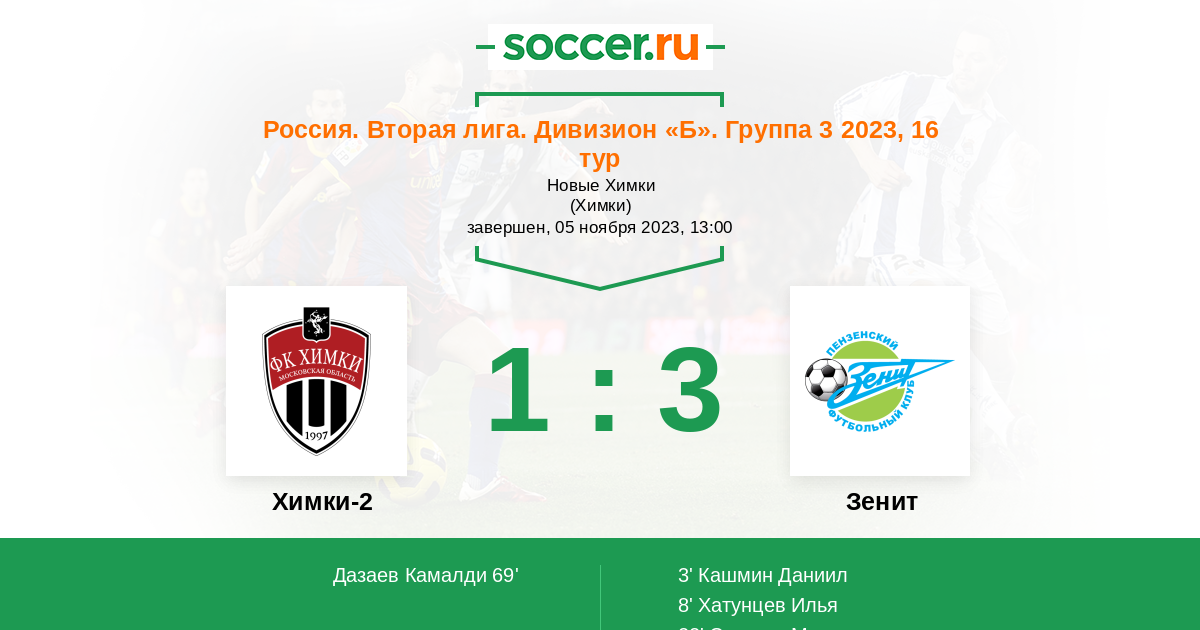 Протокол матча Химки-2 против Зенит