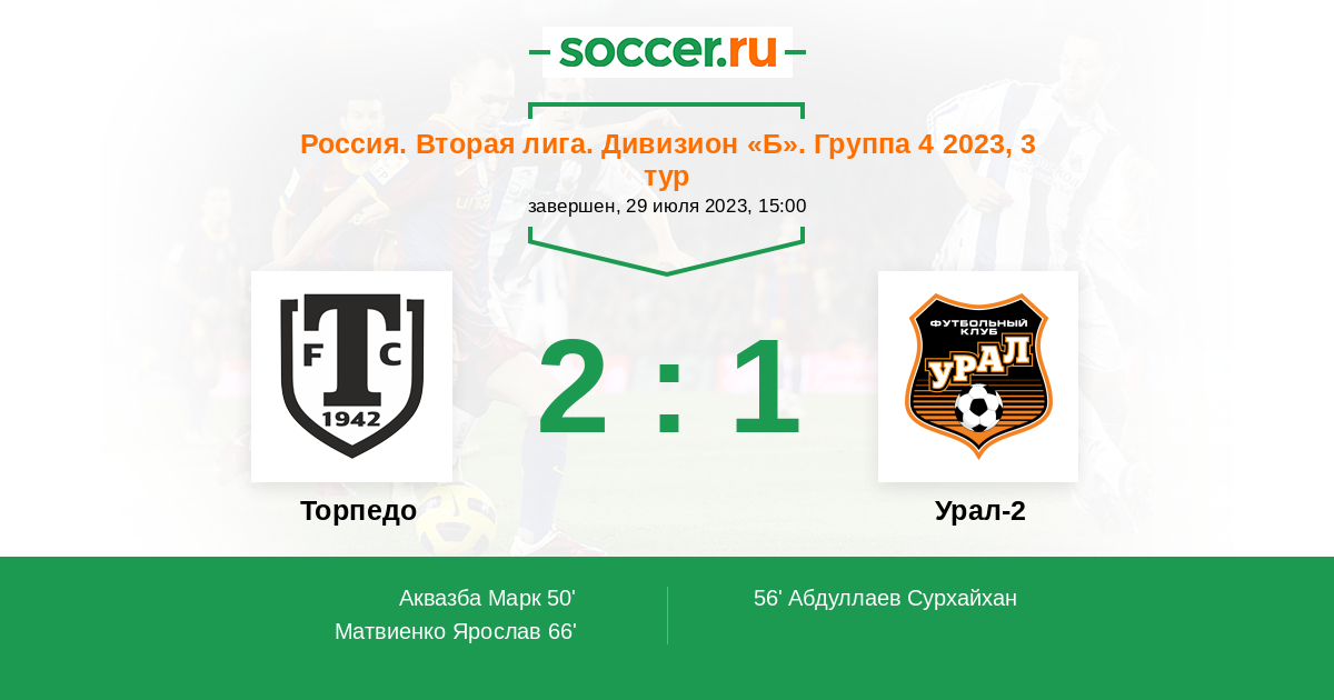 Протокол матча Торпедо против Урал-2