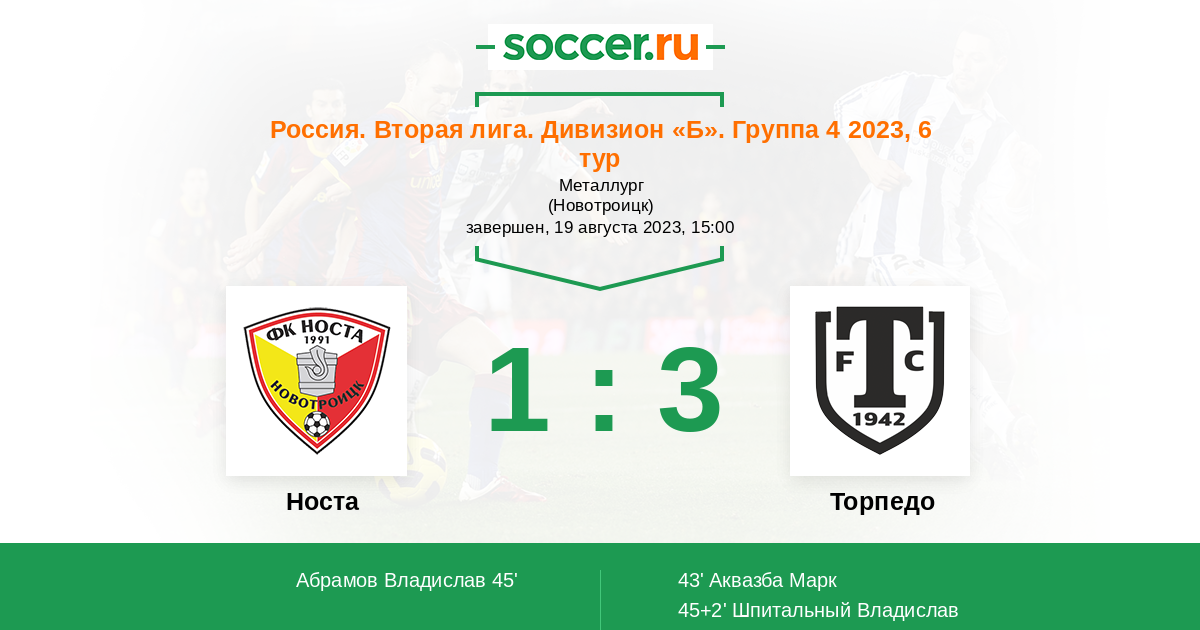 Протокол матча Носта против Торпедо
