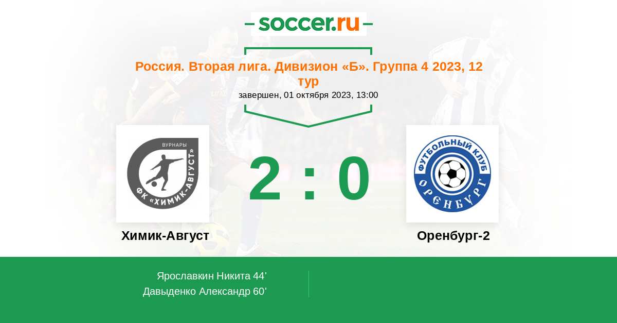 Протокол матча Химик-Август против Оренбург-2