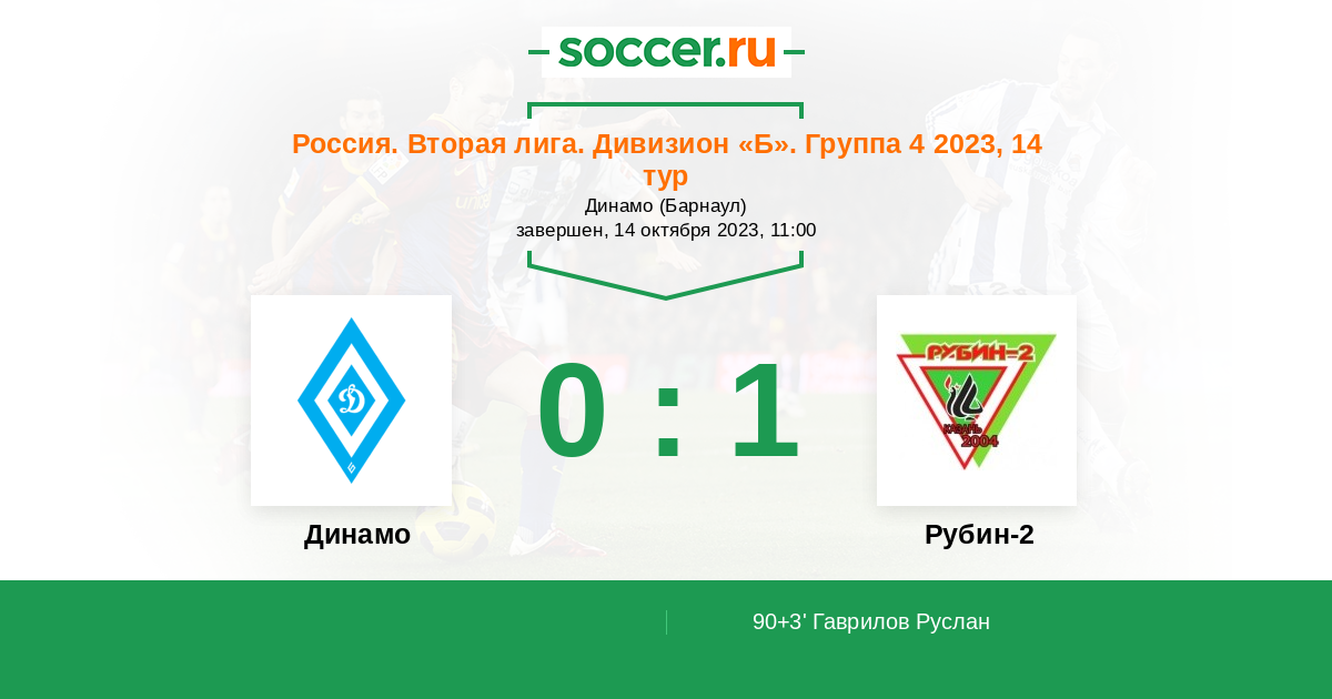 Протокол матча Динамо Барнаул против Рубин-2