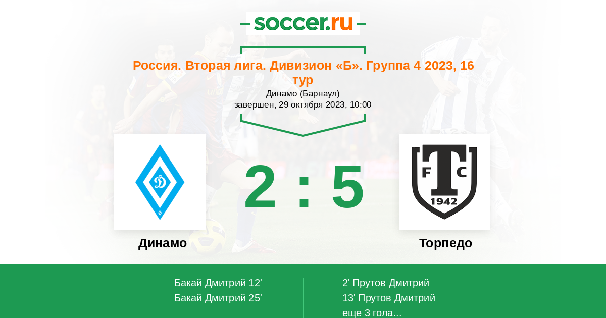 Протокол матча Динамо Барнаул против Торпедо