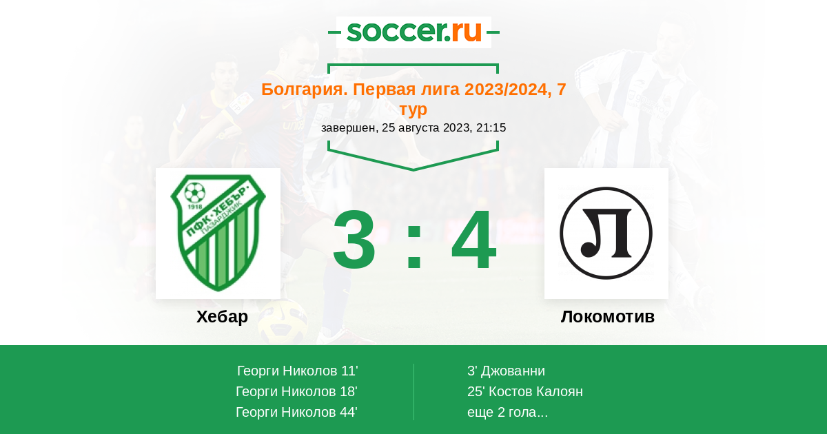 Протокол матча Хебар против Локомотив