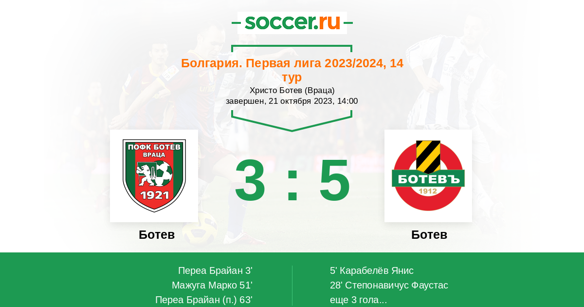 Протокол матча Ботев Вр против Ботев Пл