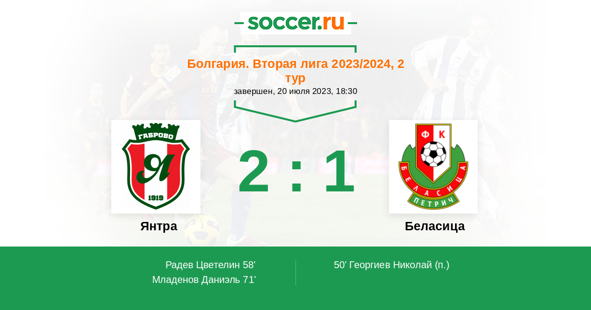 Протокол матча Янтра против Беласица