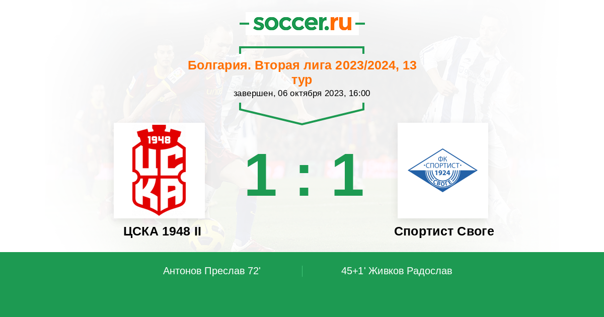 Протокол матча ЦСКА 1948 II против Спортист Своге