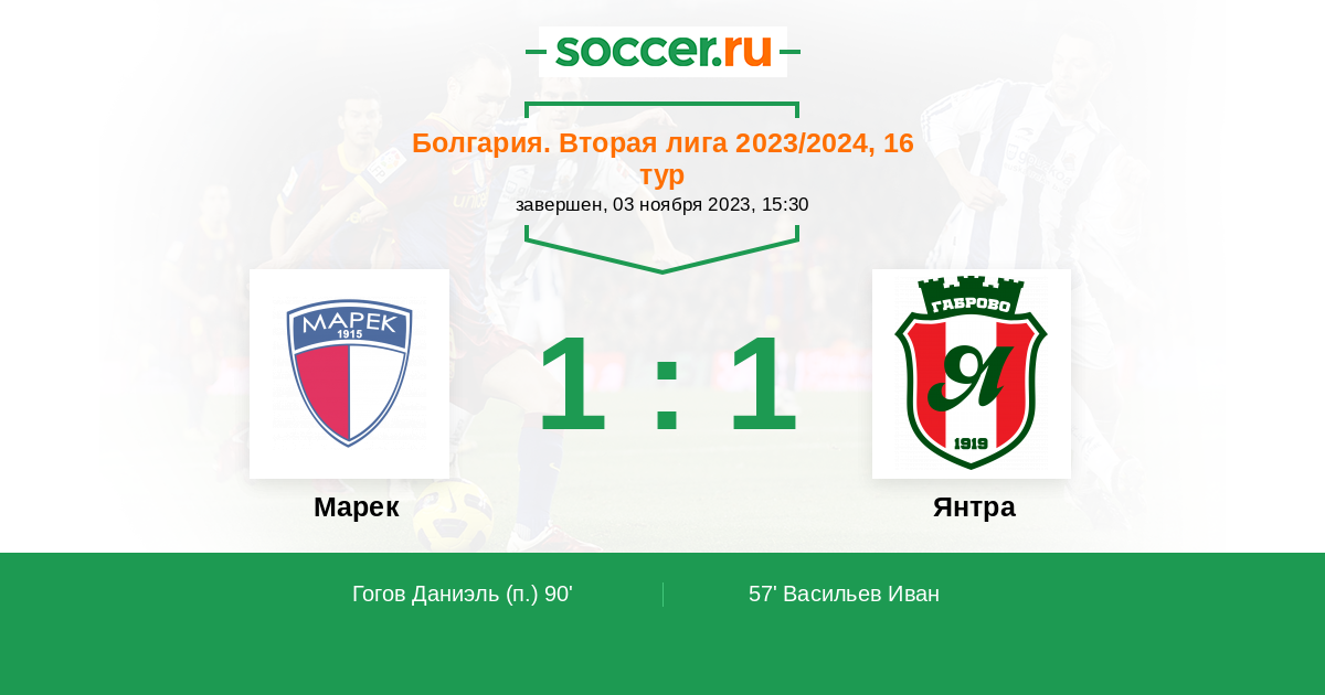 Протокол матча Марек против Янтра
