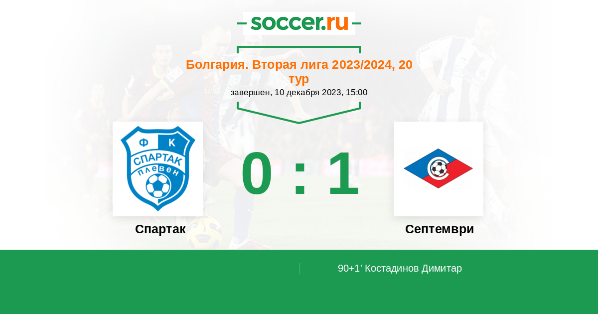 Протокол матча Спартак против Септември