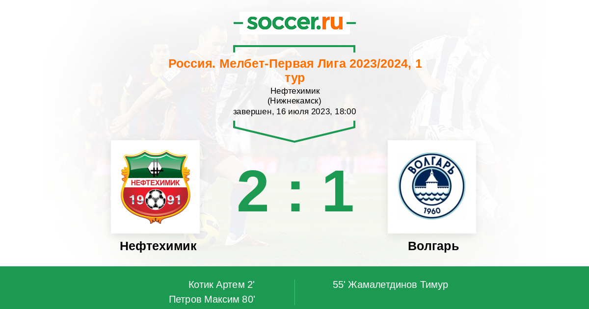 Протокол матча Нефтехимик против Волгарь