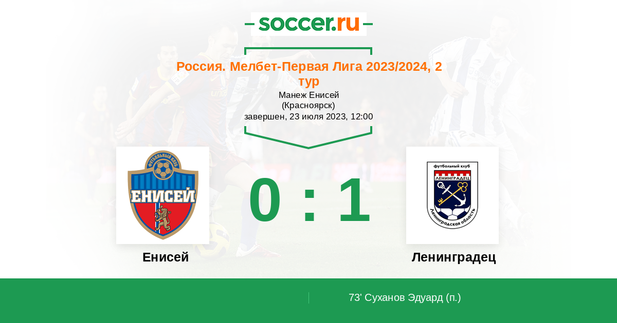 Протокол матча Енисей против Ленинградец