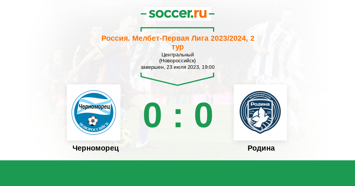 Протокол матча Черноморец против Родина