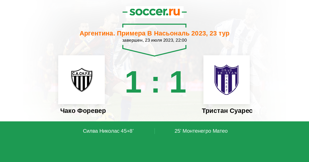 Протокол матча Чако Форевер против Тристан Суарес