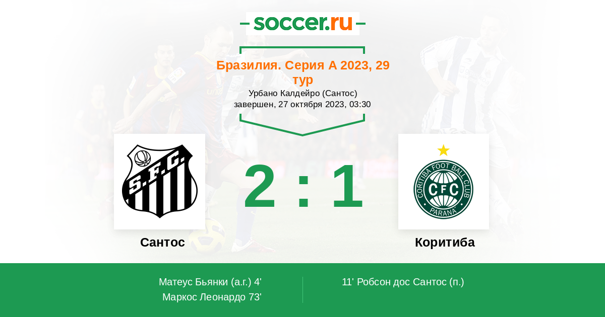 73' (2:1) Маркос Леонардо (9) (Сотельдо Йеферсон (10))