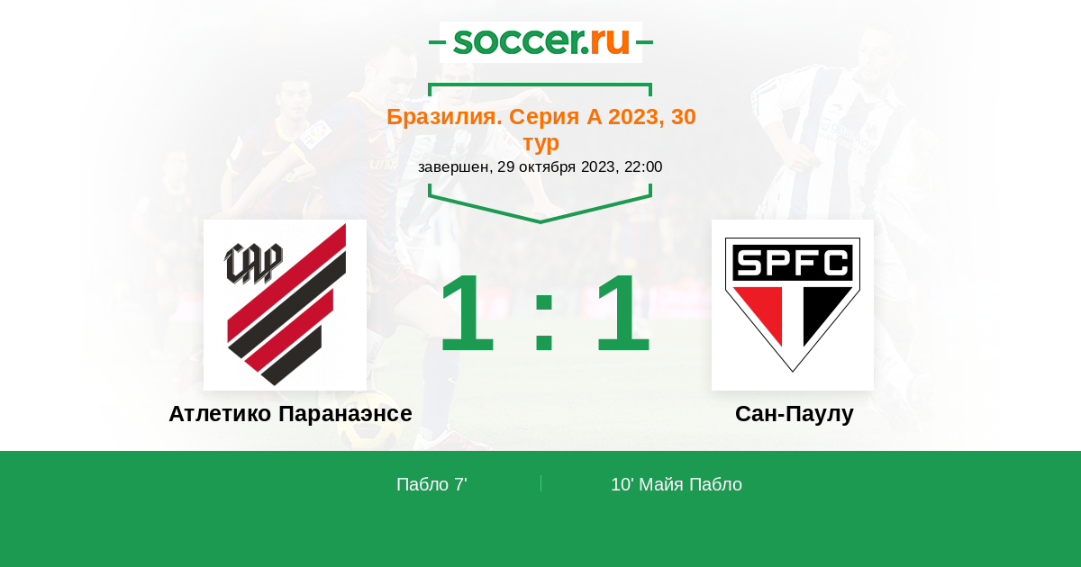 Протокол матча Атлетико Паранаэнсе против Сан-Паулу