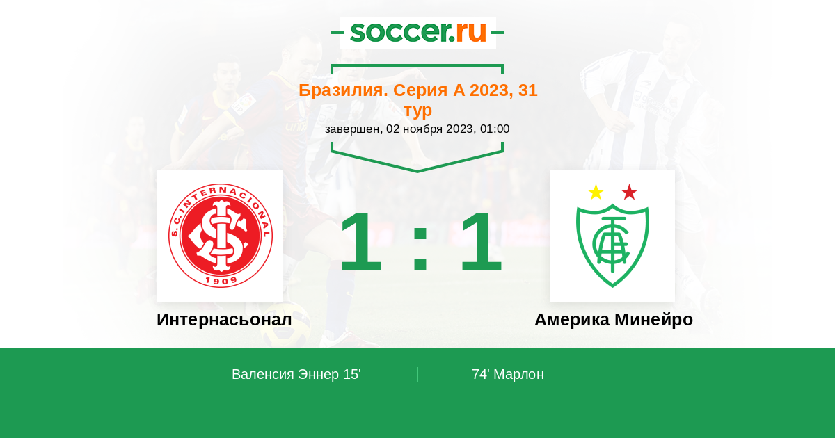 Протокол матча Интернасьонал против Америка Минейро