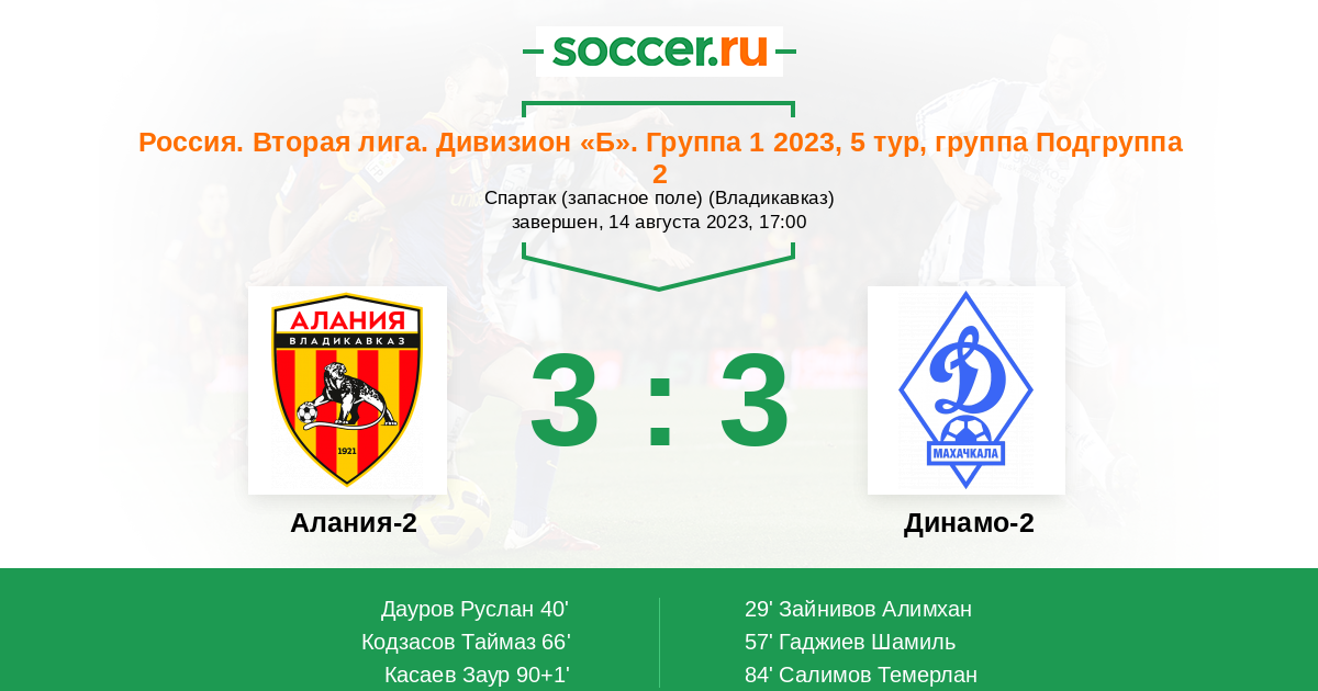 Протокол матча Алания-2 против Динамо-2