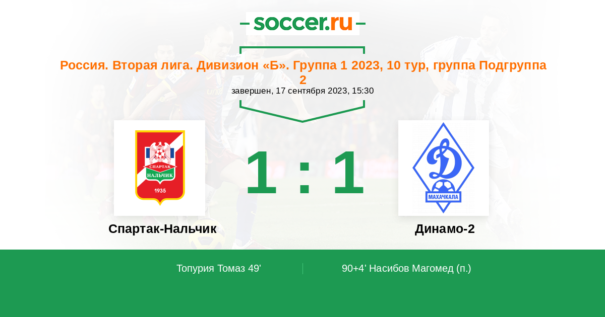 Протокол матча Спартак-Нальчик против Динамо-2