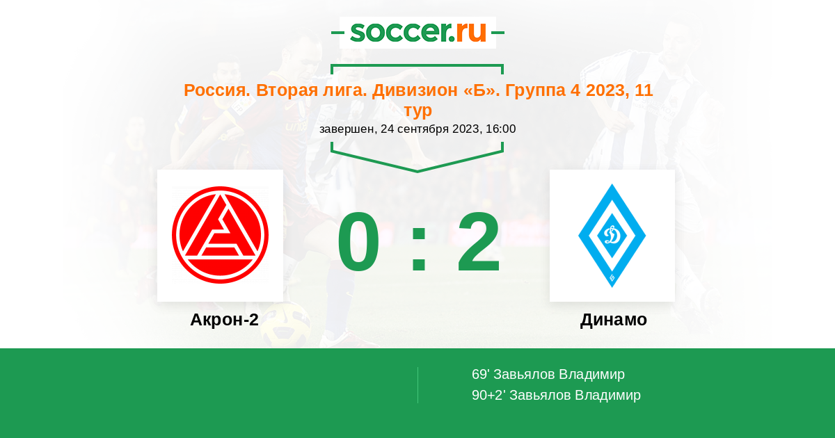 Протокол матча Акрон-2 против Динамо Барнаул