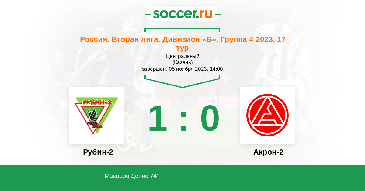 Протокол матча Рубин-2 против Акрон-2