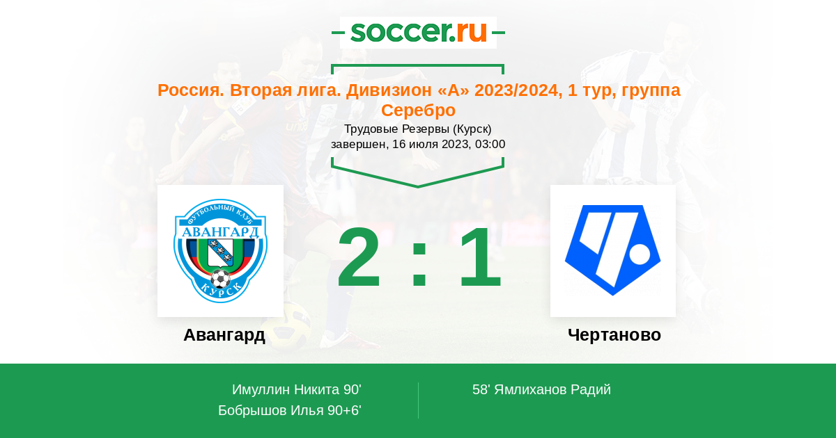 Протокол матча Авангард против Чертаново