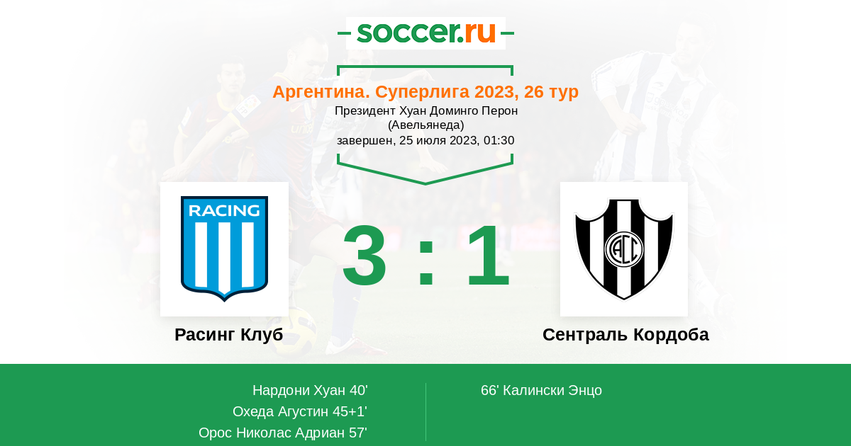 Протокол матча Расинг Клуб против Сентраль Кордоба