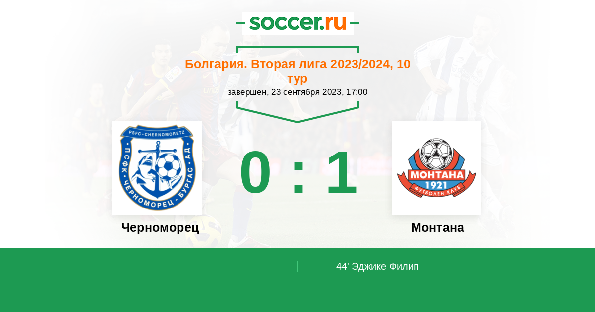 Протокол матча Черноморец против Монтана