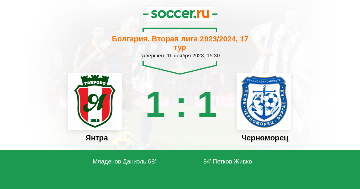 Протокол матча Янтра против Черноморец