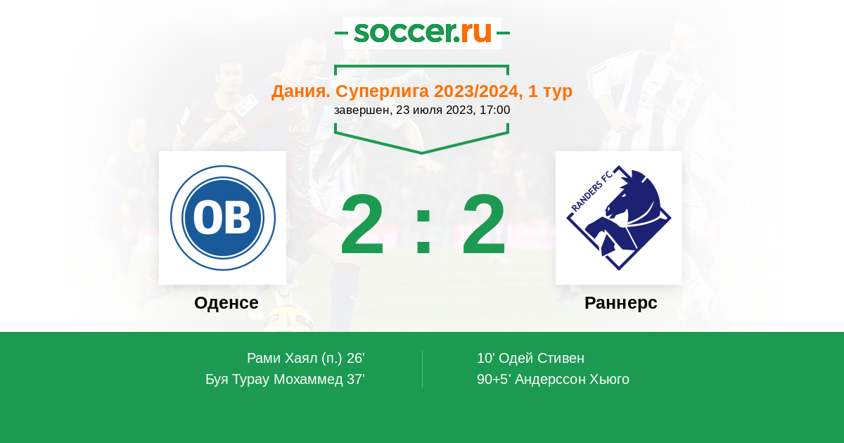 Протокол матча Оденсе против Раннерс