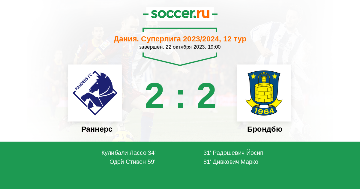 Протокол матча Раннерс против Брондбю